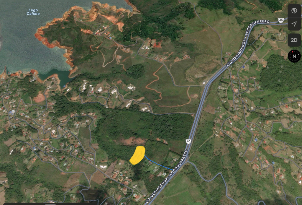 Excelente lote de 7,176 m² ubicado en la exclusiva zona del Lago Calima, con una impresionante vista panorámica del lago. El terreno se encuentra cerca de los principales centros de deportes acuáticos, lo que lo convierte en una excelente opción para quienes buscan disfrutar de actividades al aire libre. Además, su clima espectacular durante todo el año garantiza una experiencia única para quienes visiten la zona. A tan solo 200 metros de la vía principal, este lote es ideal para construir tu casa campestre o proyectos turísticos, como la construcción de cabañas o un glamping, lo que lo hace perfecto para rentas cortas. Aproveche esta oportunidad en una ubicación privilegiada, donde la naturaleza y la tranquilidad se combinan con la cercanía a actividades recreativas. ¡El lugar perfecto para desarrollar su proyecto y generar ingresos!